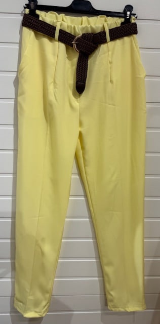 A super nice and easy-to-match suit trouser in yellow that gives the outfit a fresh, summery feel 😍 The trousers have elastic at the waist with loops and comes with a nice brown belt that puts the finishing touch 💫