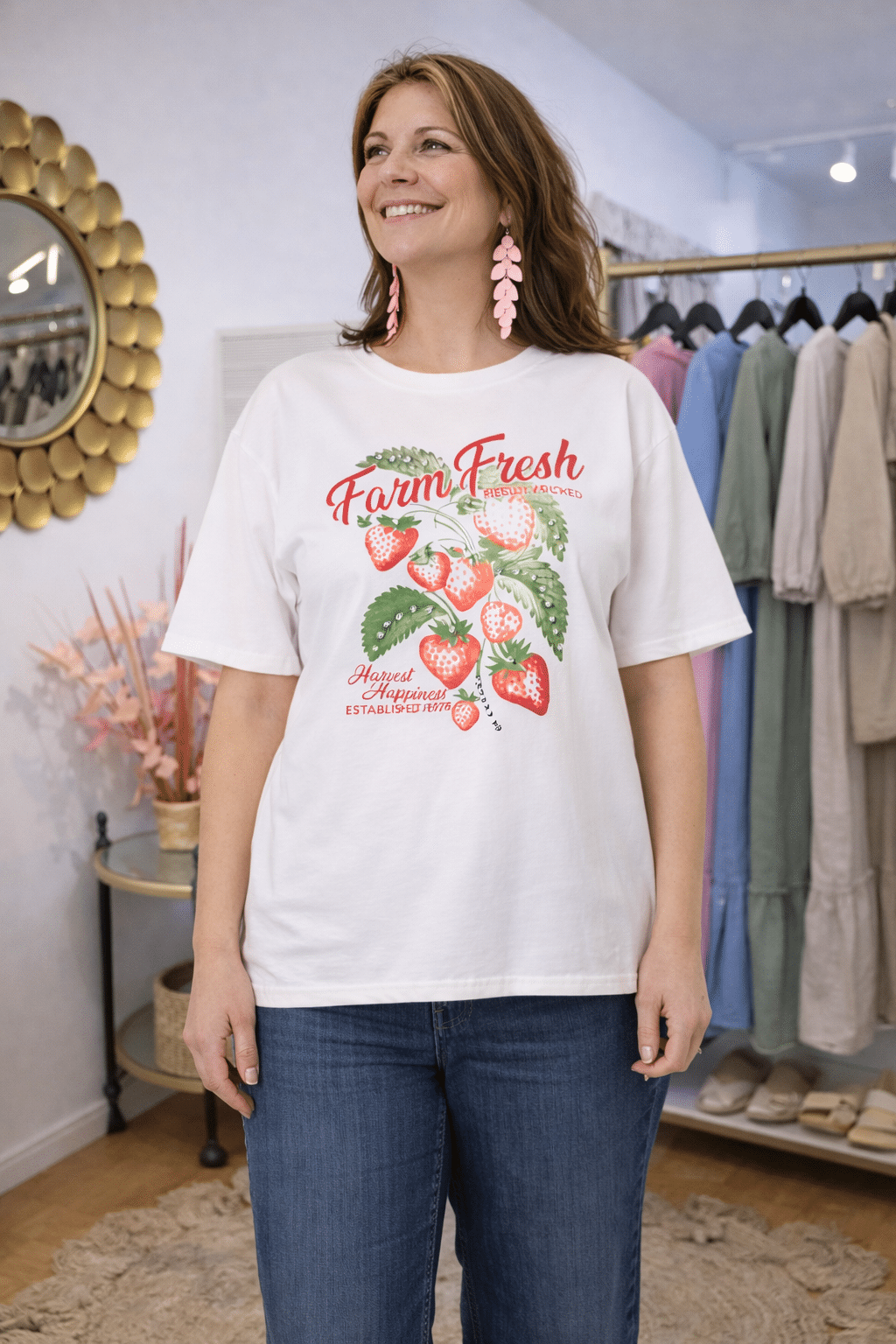 T-shirt with “Farm Fresh” print (strawberries) – Caramell Fashion 🍓✨