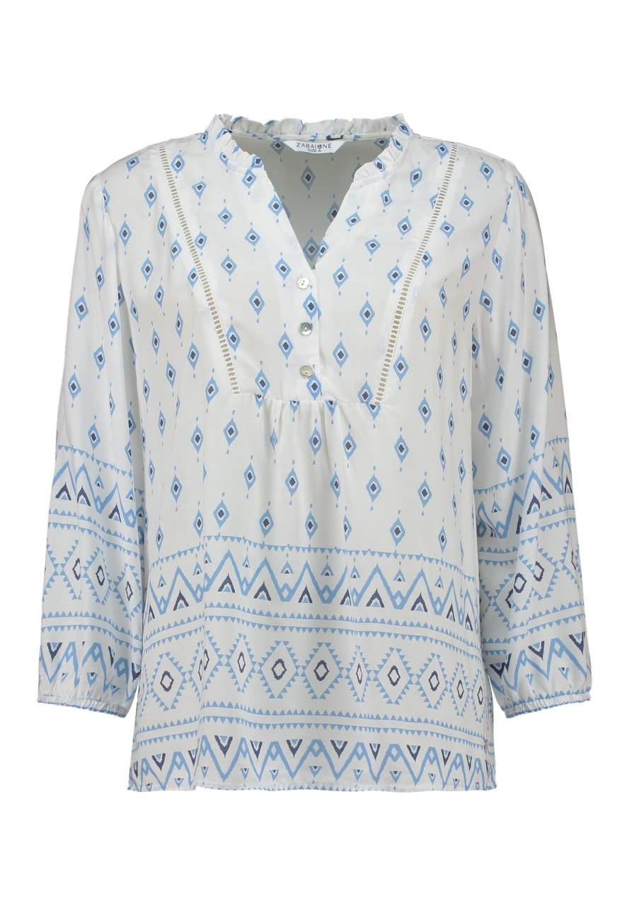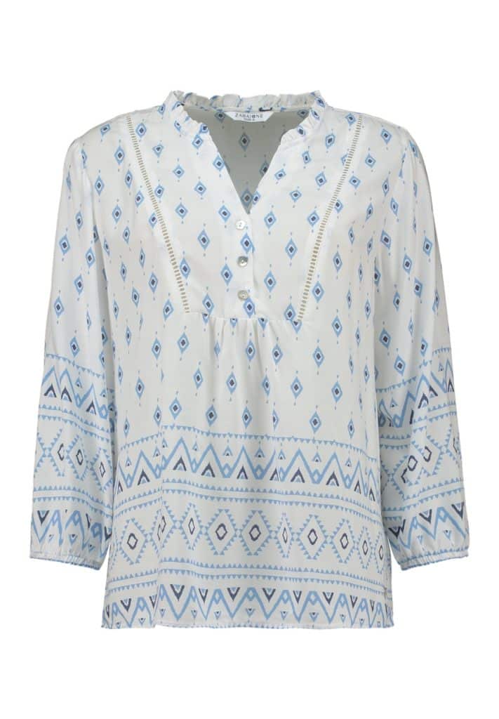 Mönstrad blus i viskos – Zabaione 💙🤍✨